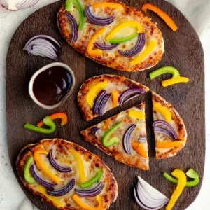 You may have had pitta bread pizzas, before but have you had them with topped with your favourite BBQ sauce, bell peppers and lots of onion? So simple but oh my goodness, so addictively good!
