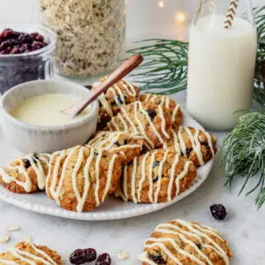 These Cranberry Orange Oat Cookies tick all the boxes. They are buttery, syrupy, chewy and full of festive flavour. You can make them without the white chocolate drizzle if you like, although it does compliment the cranberry and orange flavour perfectly, and gives them a more festive glow up. I mean if you can't drizzle your cookies with chocolate at Christmas, when can you?!