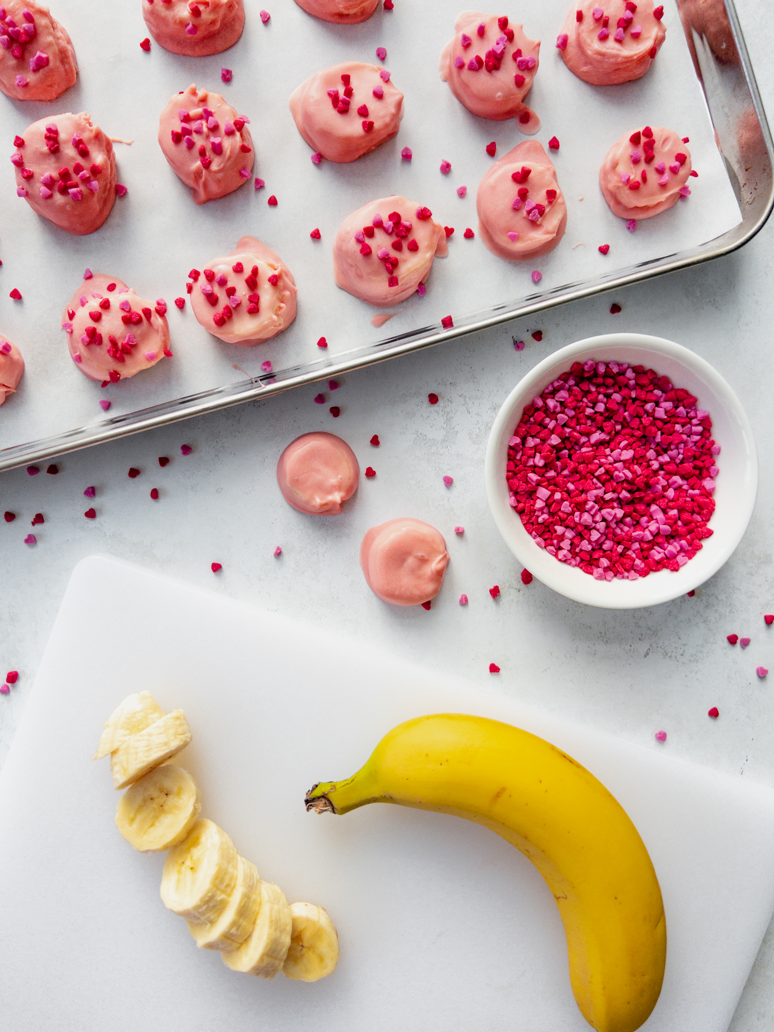 You can buy the cute little pink and red heart sprinkles I used here, but any pink mix or pink and red sprinkles will do! Alternatively, and as a healthier option, use freeze-dried raspberries.